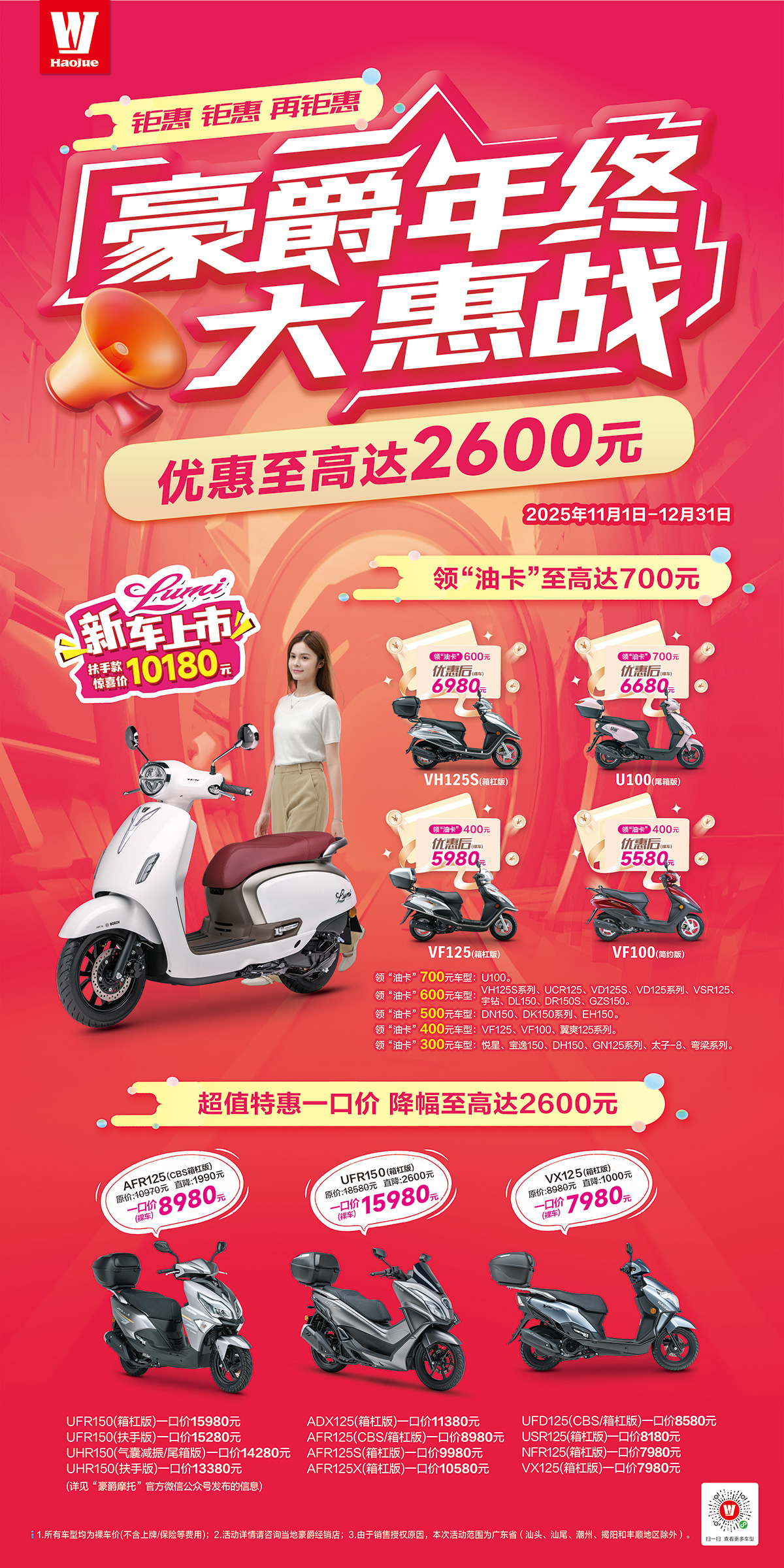 豪爵年终大惠战--钜惠 钜惠 再钜惠 优惠至高达2600元!